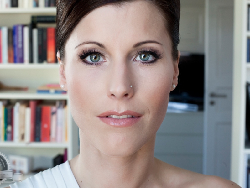 Selbstverständlich ist hierbei, die Haltbarkeit des Make-ups zu gewährleisten. Dieses erreicht man mit fixierenden & wasserfesten Profiprodukten. Die Brautfrisur darf bis in die frühen Morgenstunden bewundert werden.